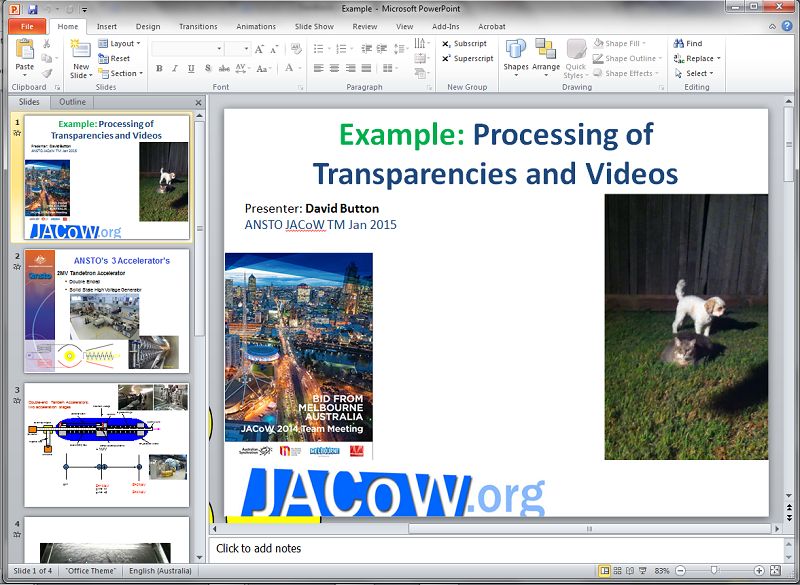JACoW Team Meeting 2016 - Processing Transparencies & Embedding Animations
