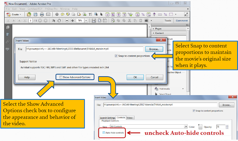 ![]() There are some alternative tools you may find helpful for processing the video files into the compliant format, and also the Free Rotate Tool for videos that appear in the final document 90 degree rotated, oneof these will be shown in the Tutorial. Adobe Media Encoder CChttp://www.adobe.com/products/mediaencoder.html ![]() All round video encoder, is trial version available preforming task of HandBrake, and Free Video Flip and Rotate. I have found this tool useful as the BitRate of viedos can be adjusted to produce smaller files. Videos in 4K of more than 500MB have been presented in the past, the file server by default want accept a file over 100MB, thus adjustment to the BitRate needs to be reduced. Note: Adobe Create “Attempts” video embedding automatically when this package installed on your workstation. Free Video Flip and RotateNote: the software will try and install extras during installation, just uncheck where possible during installation. Tool which can be used to rotate and flip videos if meta data is lost. This step to be done before final transecoding in HandBrake. Processing Animated GIF Files with VirtualDubhttp://sourceforge.net/projects/virtualdub/ ![]() Animated GIFs must be converted from GIF to AVI, and then finally can be converter to one of the compatible formats for embedding into the PDF. This can be done using firstly VirtualDub to convert the animated GIF to AVI. ![]() ![]() Example Animated GIF of ANSTO STAR 2 Million Volt Tandetron Accelerator High Voltage Generator Capturing Screen Section with CamStudioTo be added ![]() Embedding Video into PDF Document with AcrobatOnce you have prepared your initial PDF of the presentation, and process the video files into the correct format it is a simple process of using the Tools > Content > Multimedia > Video insertion tool. Using this toll you drag an area where the video is to be placed, then continue to select the file. ![]() ![]() Statistics![]() |