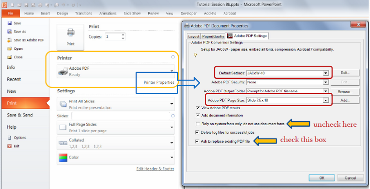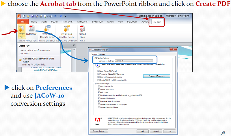 Note: All PDF's must have a define name Paper_ID_TALK.PDF, for example "MOXA40_TALK.PDF". Print to Adobe PDFTo produce a PDF this way, follow the normal process of printing.
