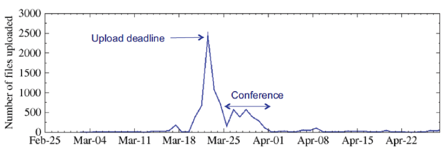 - Peak traffic was ~250 files/hr. on paper upload deadline