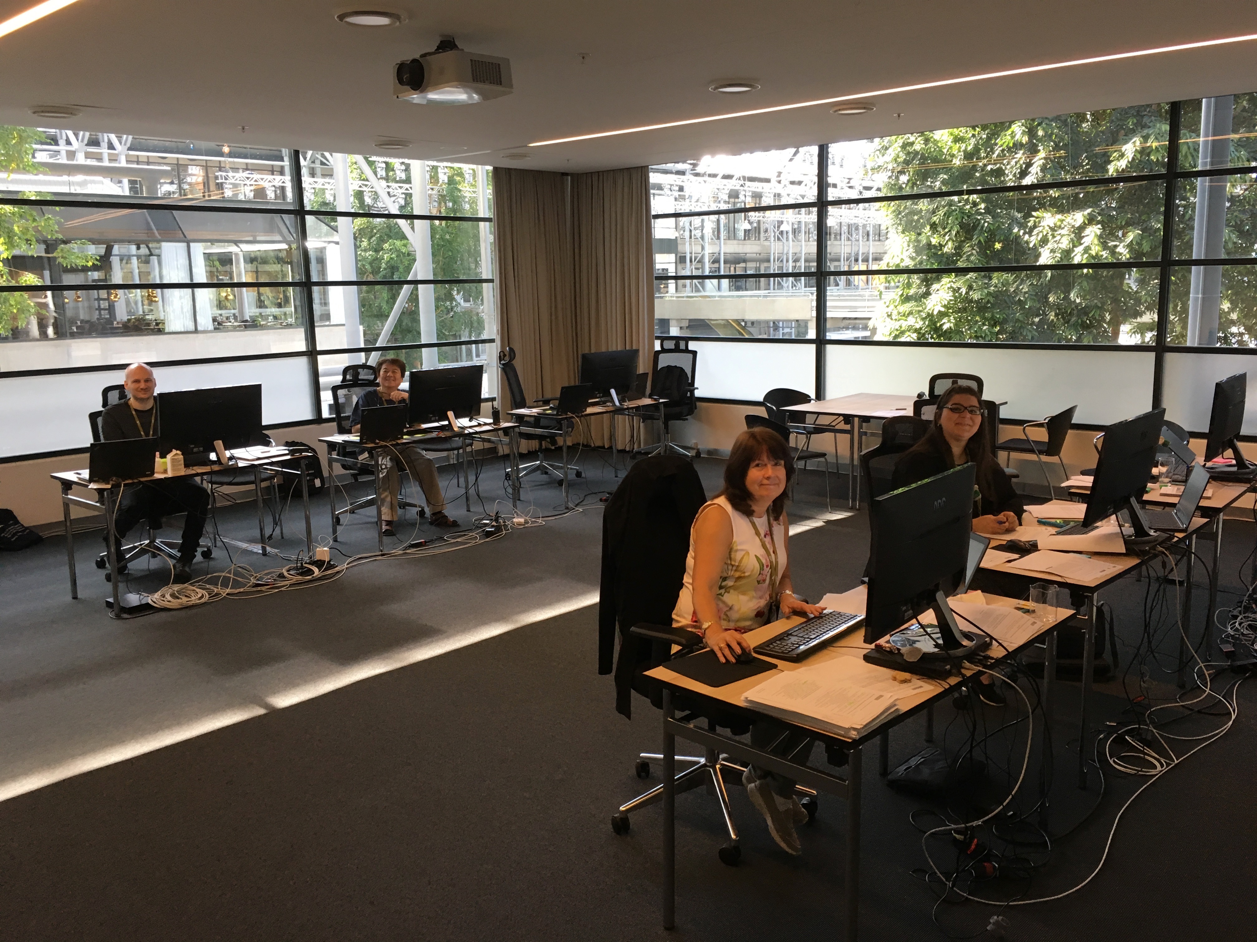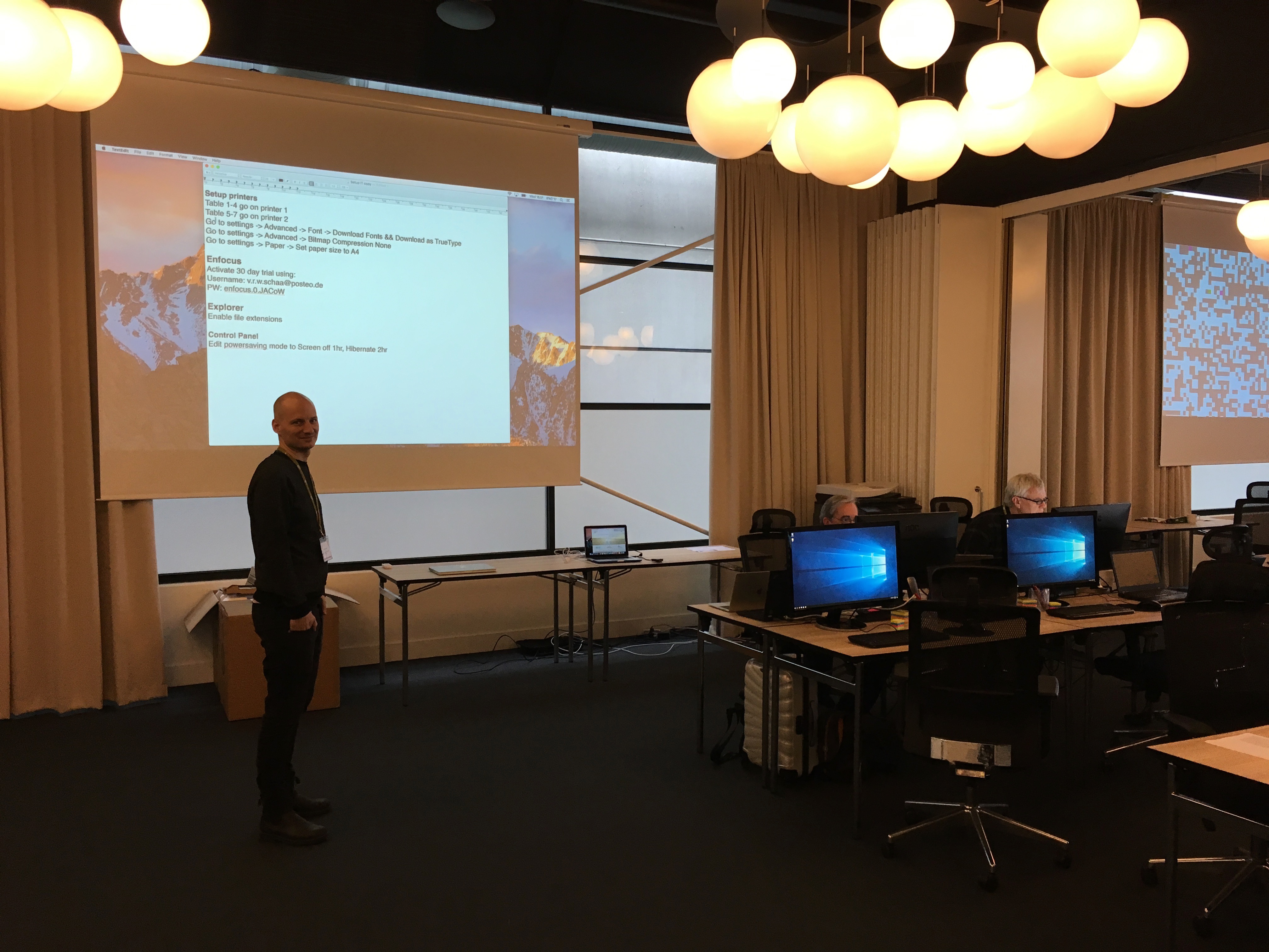 Tex: This did not work with the old software bundle provided. Just made a manual installation. The TEX people are generally used to these tools, however that's no excuse to not be diligent. Printer: The driver was embedded in the system installation, this worked satisfactory in our case. Proceedings office![]() ![]() Speaker preparation & Author reception![]() Internet Cafe![]() ![]() Auditoriums![]() ![]() Routines & briefingsOur IT/core team came in on the Wednesday, be prepared to coordinate the work from the start.
