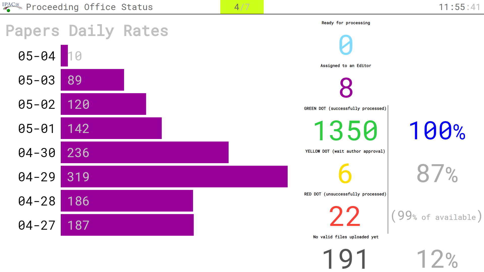 Paper Processing Status PageScript: page_edot The SPMS provides a similar page, but this can be more easily customized. ![]() Paper Status AppScript: app_paper_status This page allows to quickly check the status of a paper processings. A QRcode available on the screens of the "Paper Processing Status" allows easy access to this page. The requests on this page were: