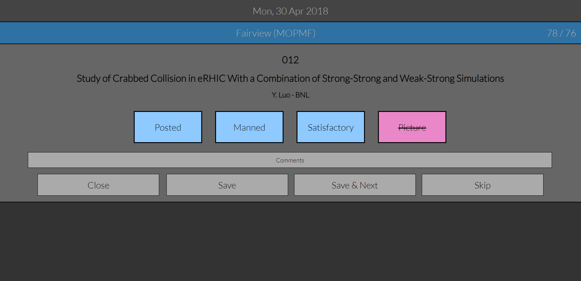 Poster Police AppScript: app_poster_police This is the only script sending data to the SPMS, for this reason an access password is required, and must be set in the relevant section of the configuration file. This is a tool to collect information about the posters - needed for the production of the proceedings