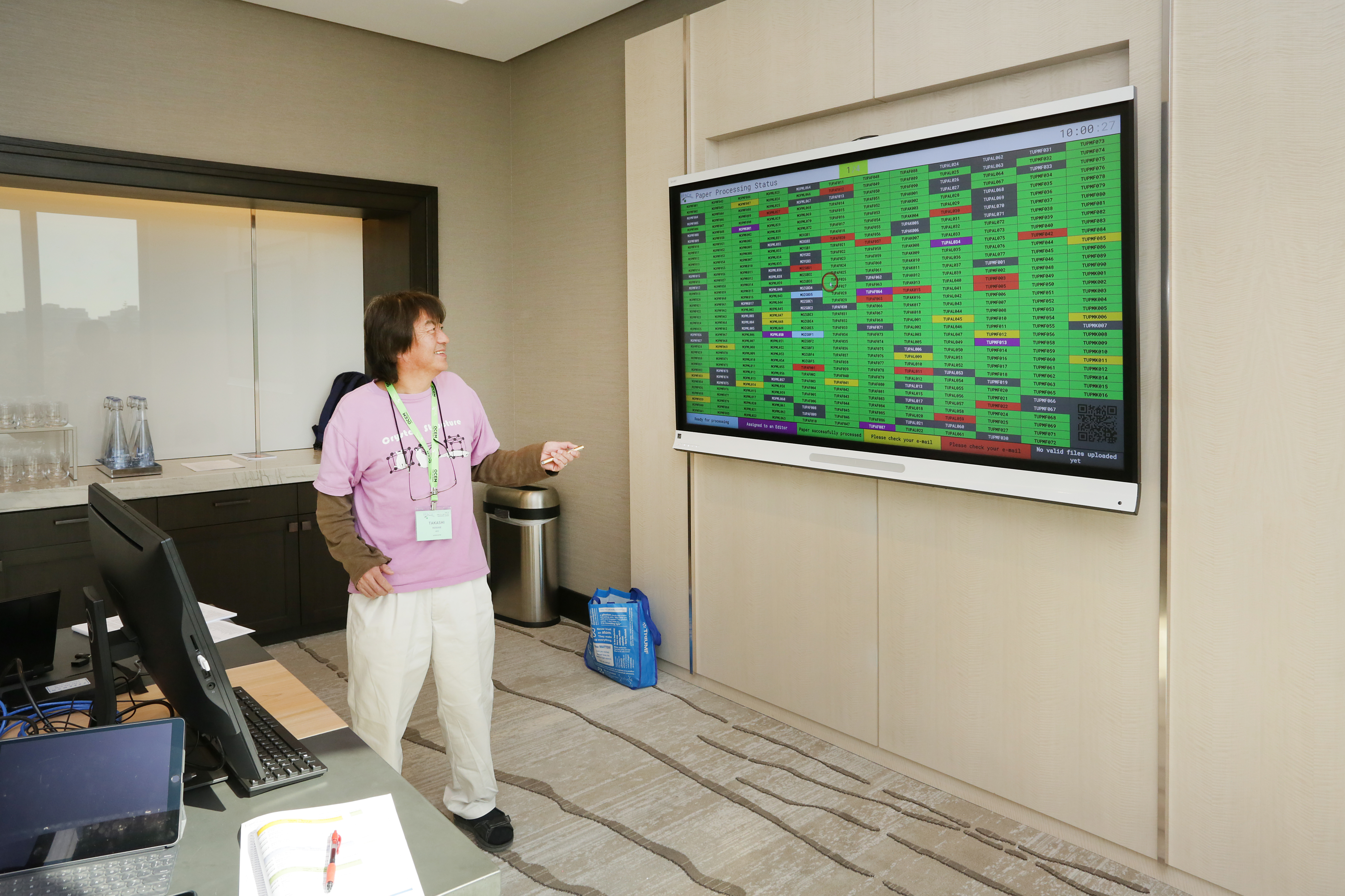 >4 staff - Steve McDonald, Bob Chow, Davis Swan, Emile Vartanian, and the IT crew from Vernon Technology Solutions Dot Boards:Large 55 inch screen TVs (purchased for conference rooms at TRIUMF, and not yet installed) were used. The Speaker Ready room had a built in screen with a $400CAD/day cost that we negotiated to 0$. Speakers could test run the use of the Logitech pointers in the room prior to their presentation. The imposing of the use of the Logitech pointers for the presentations was a problem. Many authors prefer to use a laser pointer. ![]() Computers: